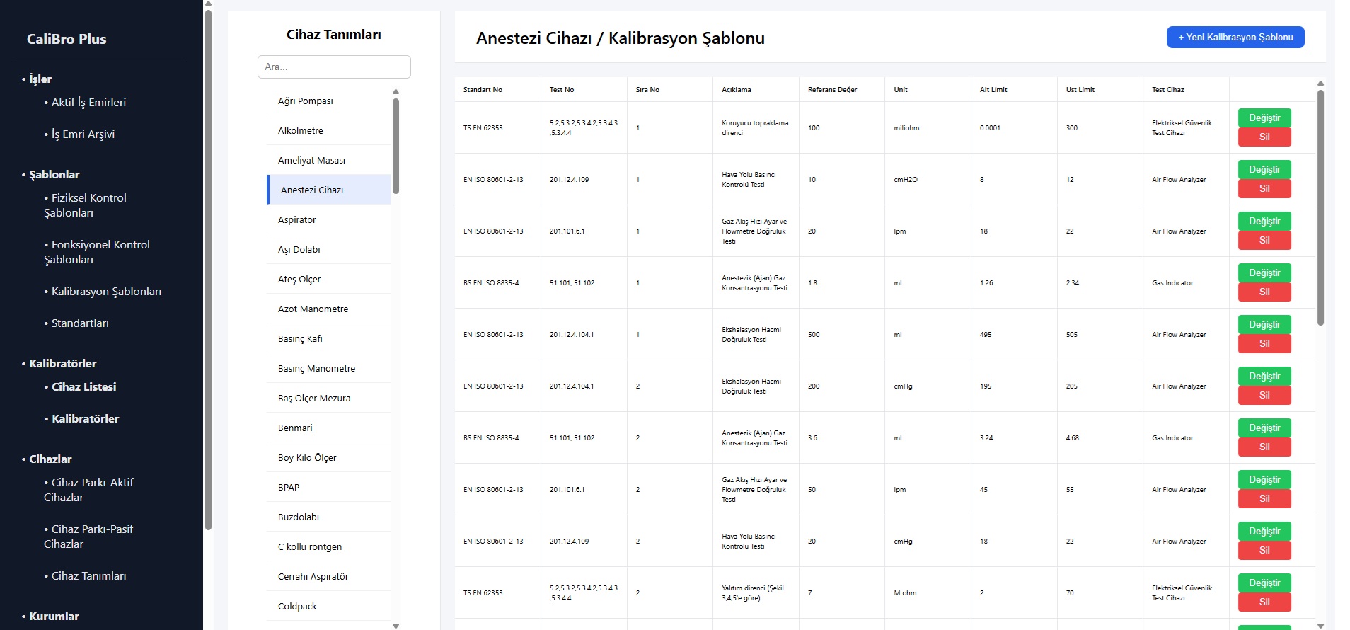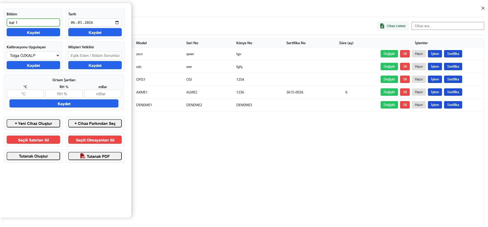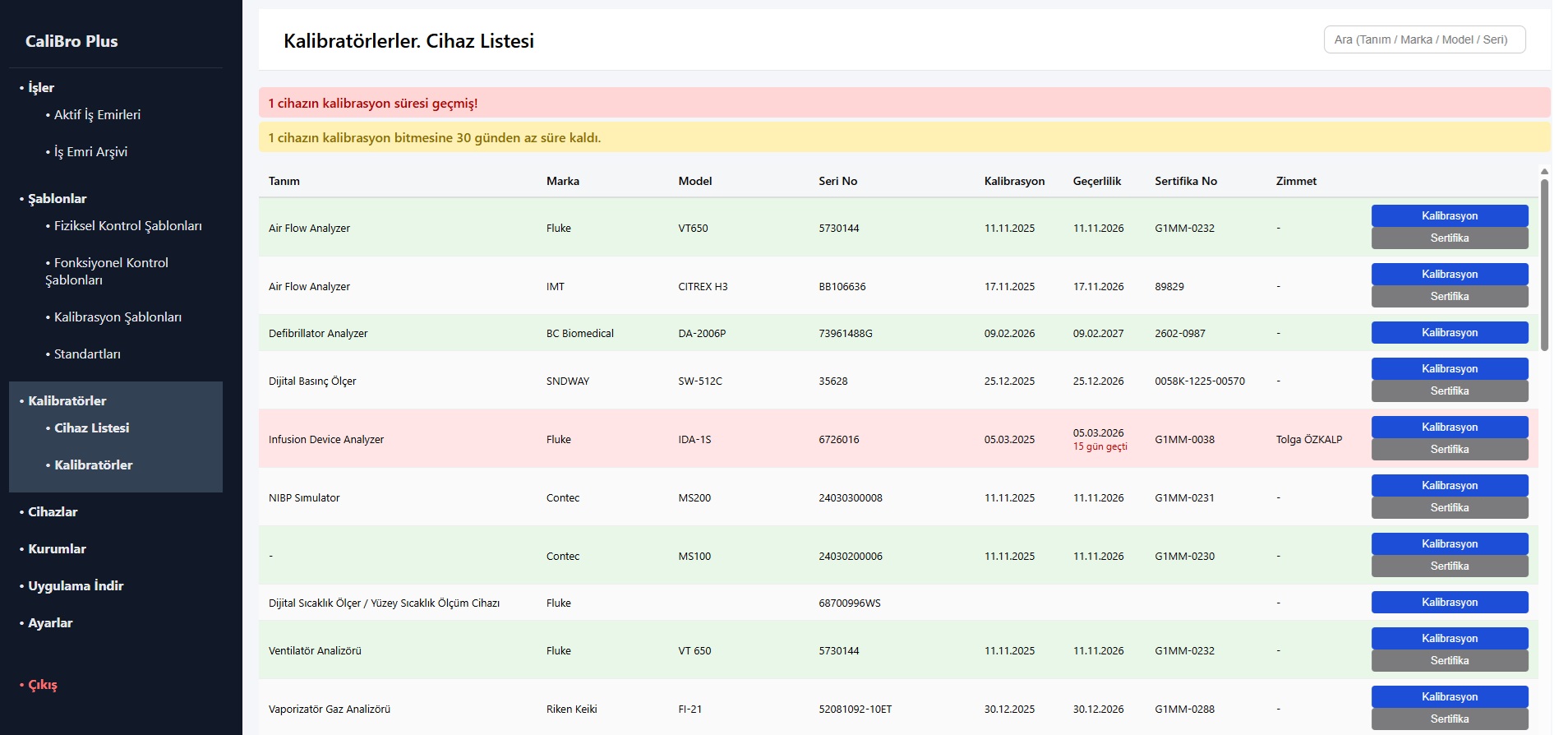 Kalibratör cihazların geçmişi ve kalibrasyon süreleri izlenir.